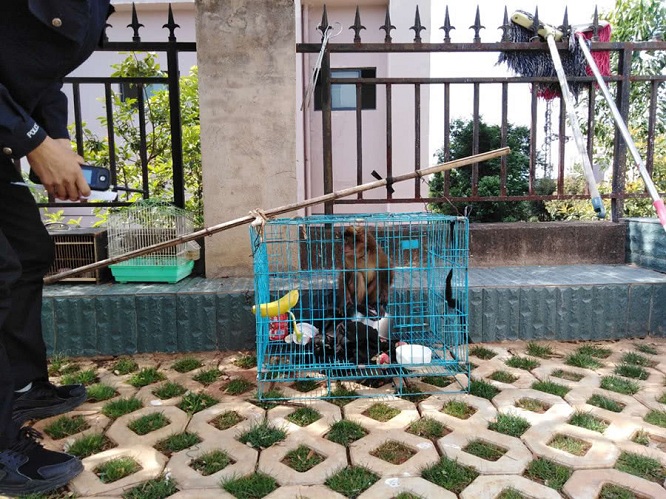 云南昆明石林县自然资源公安局救助一只猕猴