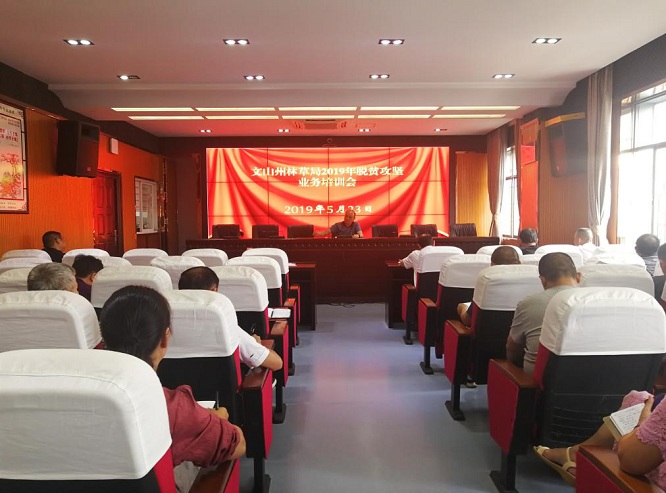 (记者 钱丙申)为深入学习习近平总书记关于扶贫工作重要论述,落实中央、省州脱贫攻坚工作有关部署,进一步加强定点扶贫巩固提升和林草生态扶贫工作。5月23日,州林草局在九楼会议室举办2019年脱贫攻坚业务培训会。州林草局党组书记、局长周贤柱同志出席培训会并作讲话,党组成员、副局长李仕标同志主持培训会,全局100名挂钩帮扶干部职工参加培训。
