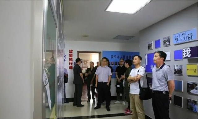 学习考察组一行实地参观了安宁法院诉讼服务中心、小周法官工作室、执行局,听取了诉讼服务中心负责人周洪、民二庭负责人周玉洁、执行局干警杨亮的现场解说和介绍。