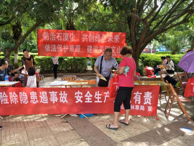 活动日,州林草局向市民发放了石漠化相关科普知识宣传单 300 余份,发放了《八角草果栽培实用技术》科普系列丛书、《建设生态文明保护七彩云南》、以及新修订的《云南省文山壮族苗族自治州文山国家级保护区管理条例》和《云南省文山壮族苗 族自治州森林和野生动物类型保护区管理条例》等资料 150 余册。并宣传了违反森林保护管理法规案法律适用条款,科普了 石漠化的成因及危害,宣传了防治石漠化在生态优先、绿色发展、扶贫攻坚和乡村振兴中所发挥的作用。