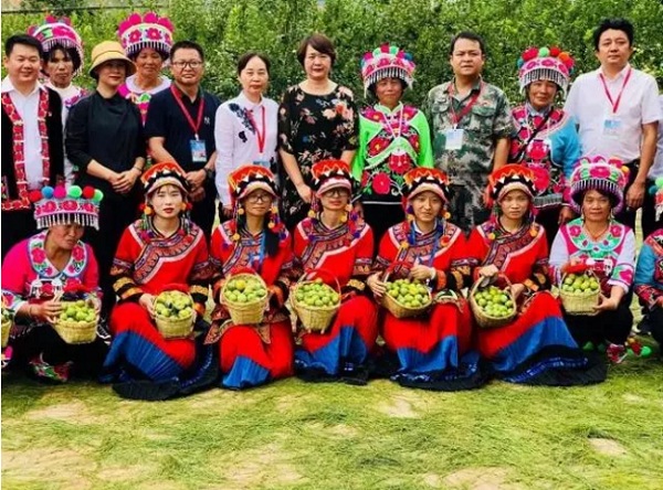 采摘美味桃李果現场,相关领导和八方宾朋合影留念