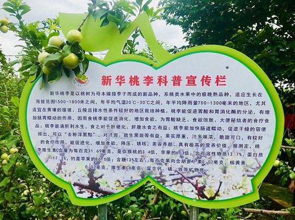 新华乡位于云南元谋县西部,距离县城48公里,在地图上形似葫芦,古称“芦头坝子”。这里山川壮美、人文厚重、交通便利、气候宜人,有名扬中外的浪巴铺土林、有风光旖旎的河尾水库、有四季飘香的鲜美水果。下一步,新华乡的桃李产业将着力在高端包装销售、电商销售等方面下功夫,把新华桃李品牌树牢、打响”。围绕打好“旅游牌”、唱好“林果戏”、做好“水文章”的发展思路,着力建设“绿色康养之乡、特色桃李之乡、生态养殖基地”,振兴乡村产业,助推脱贫攻坚。吴元顺在致辞中介绍,通过发展桃李、沃柑、杨梅、百香果、软籽石榴,新华乡走出了一条3-4月赏桃李花、5-6月摘杨梅、7-8月摘桃李、7-9月摘石榴和小枣、10月左右开始摘百香果、年底年初采摘沃柑,一年四季可休闲垂钓、品彝家美食、游土林风光和乡村美景的特色乡村旅游之路。