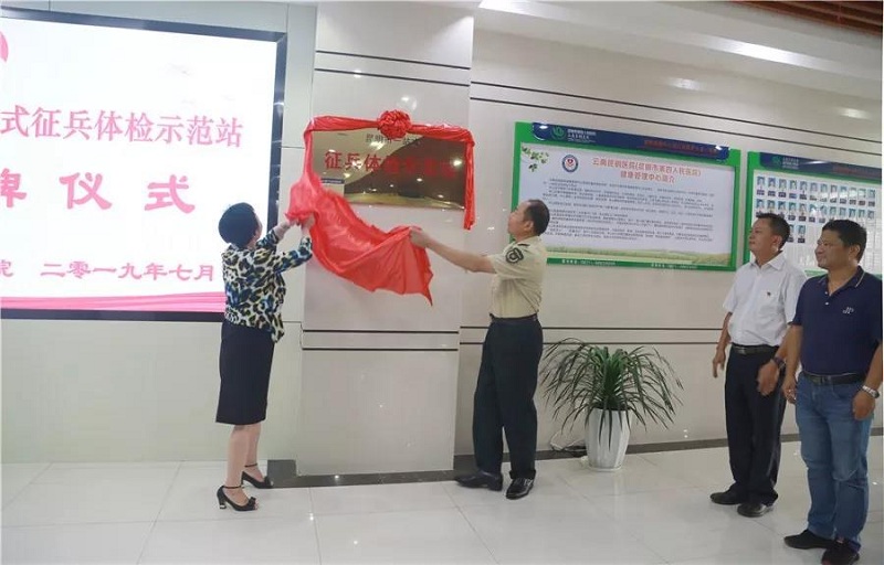 (记者 钱丙申 通讯员 许晓锐 马宏娟)征兵工作是国防和军队建设的基础性工作,承担征兵体检任务是公立医疗机构重要的职责之一。7月17日,昆明市征兵办在云南昆钢医院(昆明市第四人民医院)举行“昆明市一站式征兵体检示范站”揭牌仪式及2019年征兵体检业务培训,昆明警备区司令员任兴格和安宁市副市长王梅共同为“昆明市一站式征兵体检示范站”揭牌。昆明市卫健委 、昆明警备区动员处 、安宁市卫健局、昆明市14个区县人武部、昆明市卫健委体检指导小组、医院领导及征兵体检工作相关人员共计约100余人参加了揭牌仪式和业务培训。