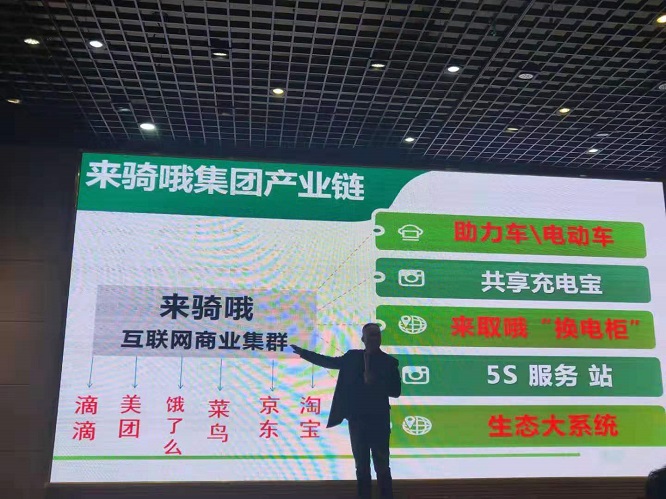 来骑哦集团公司董事长何笑天先生上台:为到场嘉宾详尽讲解了来骑哦5S服务站项目,并精彩讲述了公司的发展历程与企业文化。董事长表示,四年的时间是个蛰伏期,来骑哦坚守着、行动着,遵循着自己的原则慢慢突出重围,四年的时间足够让来骑哦稳步打牢基础后劲十足。来骑哦5S服务站的大量铺陈,足以证明来骑哦有足够的实力去将智慧出行概念,在昆明地区乃至全国各地遍地开花。20年公司将在昆明建立500家微交通出行5S服务站,投放3000辆电动车,同时投放3000台换电柜,为大家解决充电难等出行问题,为昆明缓解交通出行的拥堵,来骑哦将做到规范化管理运营。