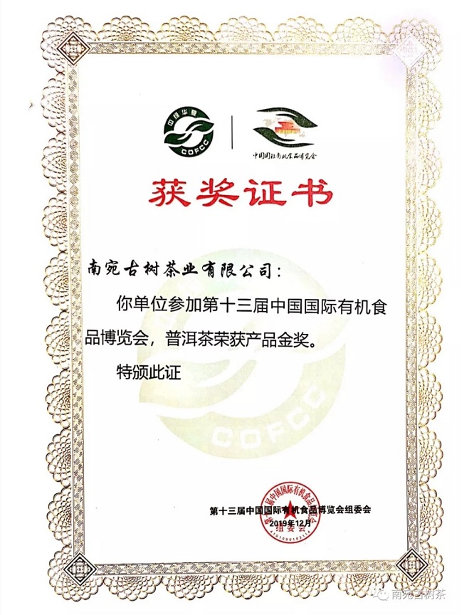 南宛有机古树茶连续四届蝉联中国国际有机食品金奖,筑牢了南宛在中国国际有机产品界的髙品质地位,彰显中国有机食品的高品质。