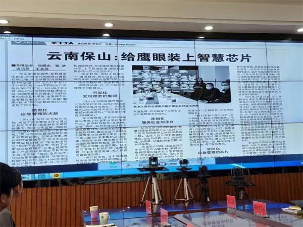 考察组实地考察了保山市应急管理局“保山数字应急指挥中心”、隆阳区河图街道“智慧河图治理指挥中心”,召开了座谈会,保山市应急管理局党组书记、局长李正标向考察组介绍了该市运用科技信息化手段,全面提升应急管理的能力和水平,构建“制度 技术”的应急管理现代化体系的工作成果,从信息化、可视化、定制化、智能化等角度详细展示了市、县、乡三级联动机制,推进应急管理一张图、监测预警、应急业务数字化等工作情况,现场演示了“应急指挥调度平台”“应急大数据分析平台”“应急视频云平台”“便民服务平台”四大平台功能和作用。