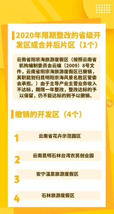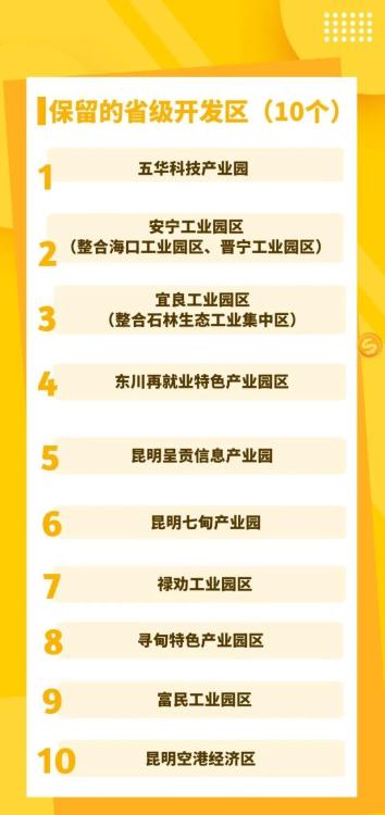 按照优化提升标准,昆明市保留的省级开发区10个,整合的省级开发区4个。