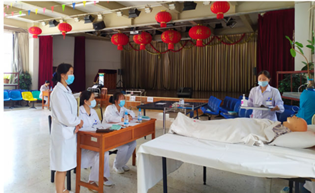 本次操作考核在医院副院长陈志祥总督导、护理部主任冒才英总协调、副主任马润娟进行具体工作安排等协调下顺利开展,其中监考教师均是副高级职称搭配中级职称组成各项技术考核小组,考核项目分别是生命体征监测技术、密闭式静脉输液技术、皮内注射技术、皮下注射技术、肌肉注射技术、真空负压静脉采血技术、口鼻吸痰法操作、使用约束带、约束衣操作等十项临床常用护理技能。