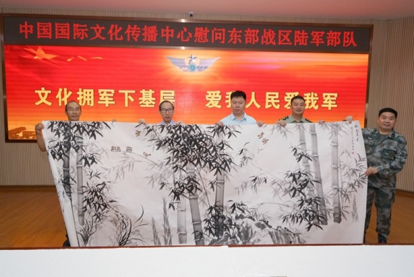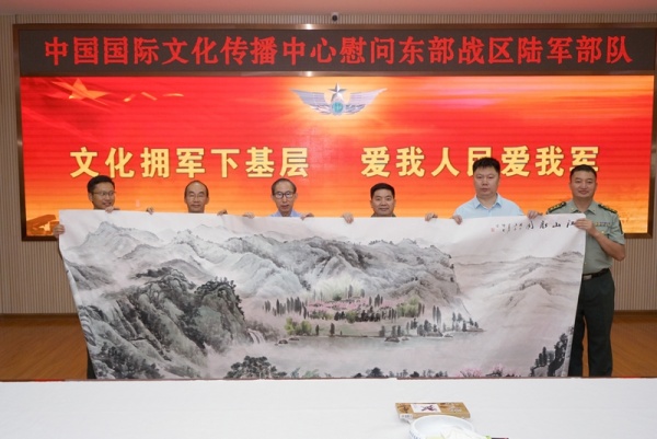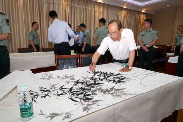 在中国人民解放军成立93周年之际,731日,由中国国际文化传播中心执行主席龙宇翔率团慰问福州部队,云南省著名画家邓邵生应邀携带″江山永固""壮志凌云"二幅大型中国画随团慰问福州部队。