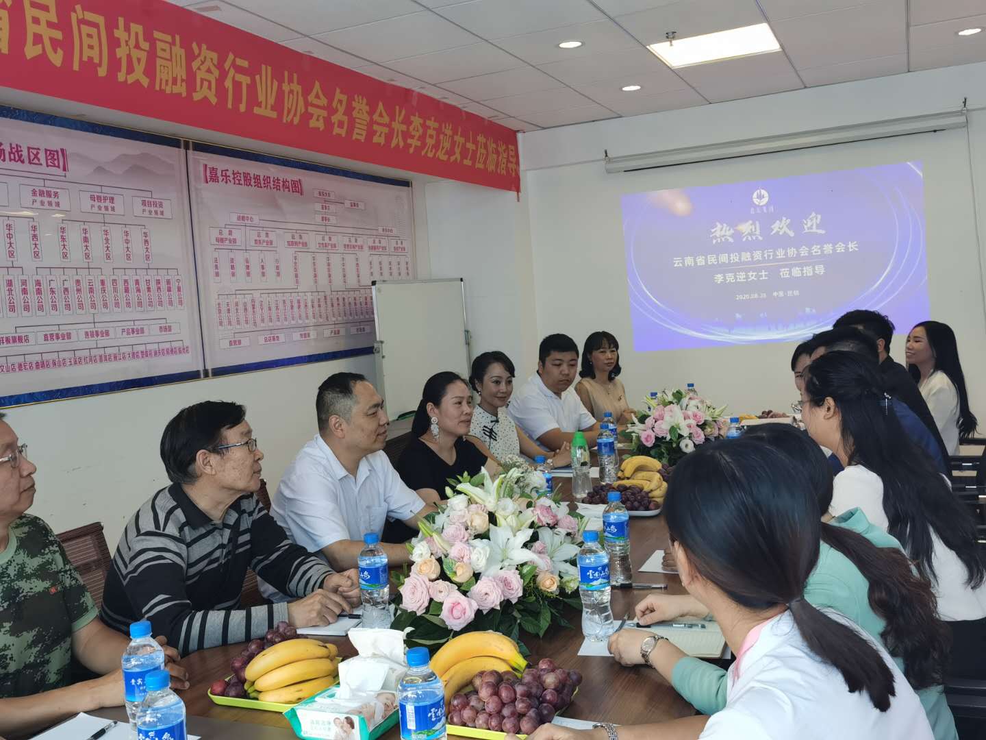 (记者 邵艳彬)2020年8月28日上午,云南省民间投融资行业协会名誉会长、“一带一路”俄罗斯联邦投资委员会名誉主席、联合国华人协会主席团主席李克逆女士,在云南省民间投融资行业协会会长汤正宇、原昆明陆军学院教授宋航、云南省民间投融资行业协会副会长罗春、原昆明市政策咨询委员会副秘书长刘瑞华、央视“发现之旅”《对话品牌》西南服务中心总制片邱琬婷和协会顾问姚祖国等陪同下,来到协会副会长单位云南嘉乐控股集团有限公司考察疫情后企业发展情况。