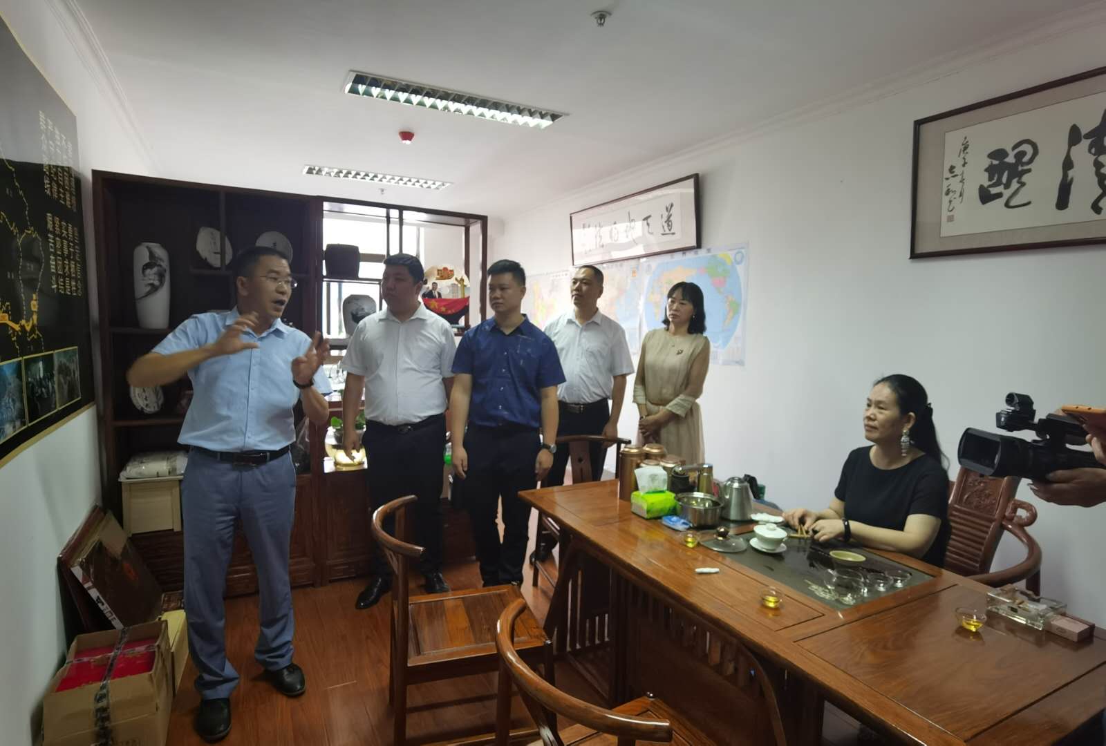 陈伟董事长向李克逆主席一行介绍集团旗下云南星月嫂之家家政服务有限公司、昆明市官渡区源力职业培训学校、云南如初健康管理有限公司和云南疆恒科技有限公司时说:“我们2013年1万元开始创业,面积不足90平米,在举步维艰时国家补助3万元让我挺过来了。发展至今,也有员工100余人,现已发展近50家加盟店,总部经营面积1800余平米,业务涉及四大领域的集团公司。在地方各级党委政府及相关部门领导的大力支持下,今年完成职业技能培训6000余人,家政派单4000多人/次,疫情后,我们顺利地实现转型升级,这些成绩,都是来自国家大好政策的作用、各级领导的关心和支持。下一步,我们以互联网+平台+金融发展战略,将公司推上一个新的台阶。”