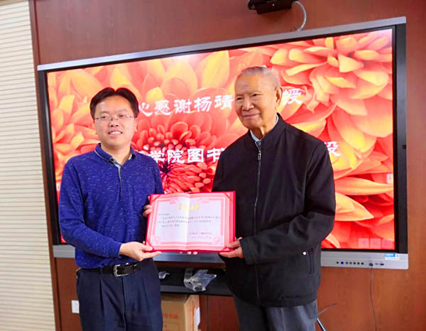 之前,杨靖华老教授还向云南省图书馆捐赠了一批医学词典等医学书籍,受到了省图书馆的欢迎和称赞。