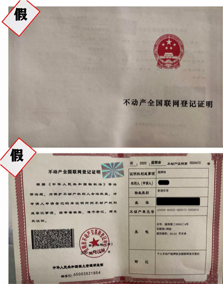 11月3日,昆明市不动产登记中心发布《声明》指出:近日,昆明某新建商品房项目小区住户向市不动产登记中心反映,住户收到“不动产全国联网登记证明”的快递,“送件人”向其住户收取快递费、人工费和工本费等费用。经昆明市不动产登记中心核实,该“不动产全国联网登记证明”及其记载的内容和印章等均系伪造的假证。