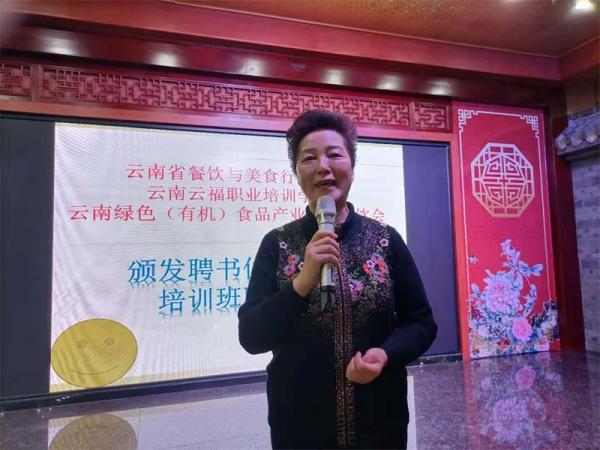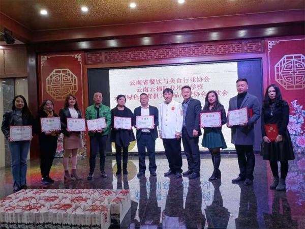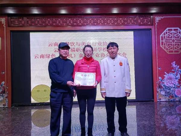 会议颁发了云南省绿色(有机)食品产业协会餐饮专业委员会副会长等各式聘书。