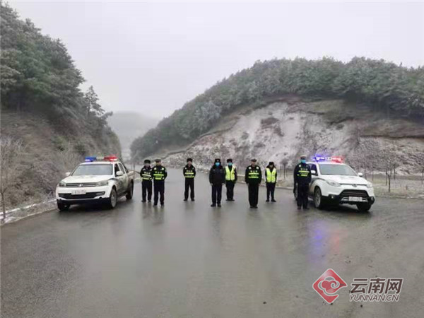 1127日,云南昭通市永善县莲峰、马楠、茂林、伍寨等乡镇气温下降至0℃左右,多数道路已有冰凌现象,为认真开展抗冰保畅工作,永善县公安局交通警察大队联合沿线乡镇派出所全力以赴开展路面巡逻管控工作。