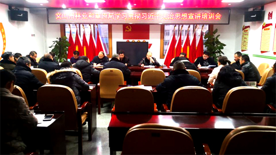 1月11日上午,文山州林业和草原局召开专题会议,宣讲习近平法治思想和学习贯彻习近平总书记在中央全面依法治国工作会议上重要讲话,结合林草实际研究贯彻工作。局党组书记周贤柱主持会议,党组成员、处级干部、各科室各单位等30余人参加会议。