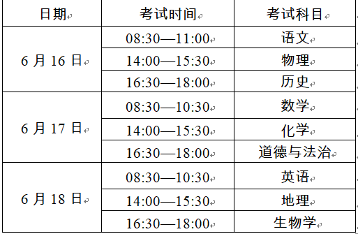 2021年云南中考时间有变化 将于6月16日至20日举行