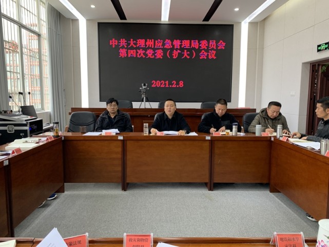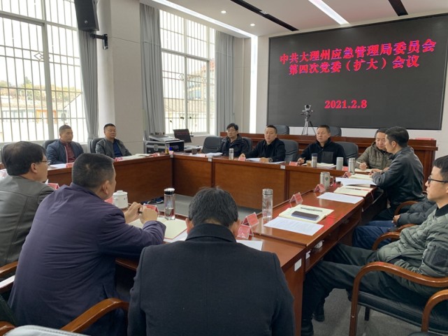 2月8日上午,大理州应急管理局党委书记、局长何建雄主持召开该局第四次党委(扩大)会议,传达学习习近平总书记在中央政治局第二十七次集体学习上重要讲话精神,州第十四届人民代表大会第五次会议精神、州政协第十三届四次会议精神,中纪委第十九届五次全会、省纪委第十届六次全会和州纪委第八届第六次全会精神,2021年州委政法工作会议精神,应急管理系统春节安全防范工作视频会议精神,研究贯彻落实措施。