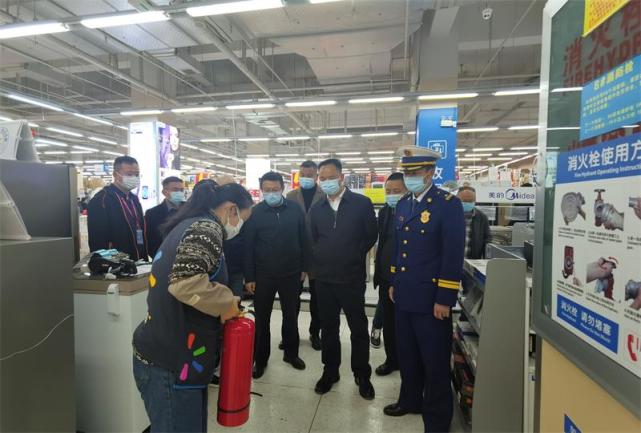 在沃尔玛购物广场,检查组一行重点对元旦前夕安全检查中发现的问题整改情况进行复查,再次对沃尔玛购物广场的应急预案、应急队伍、微型消防站进行了检查,并随机抽取人员进行了消防应急演练,检查组一行要求,要进一步加强应急队伍建设,加强应急演练和培训,进一步提高应急能力。