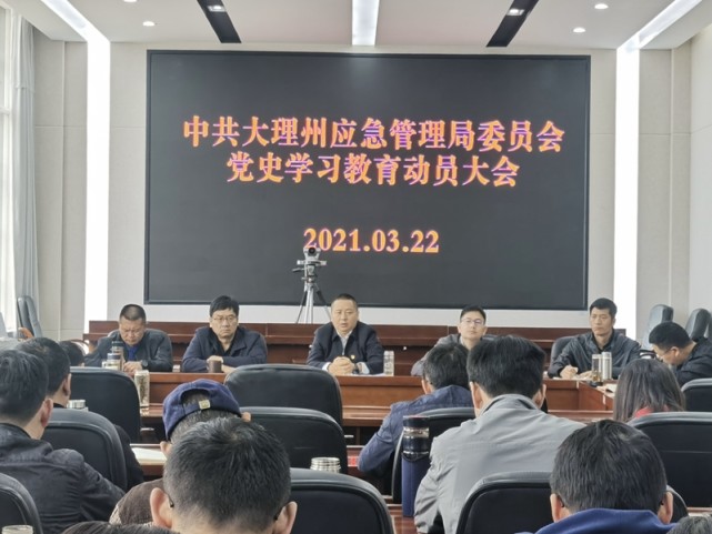 3月22日上午, 大理州应急局召开党史学习教育动员大会,党委书记、局长何建雄作动员讲话,会议由局党委委员、副局长李建宇主持,全局党员干部职工参加会议。