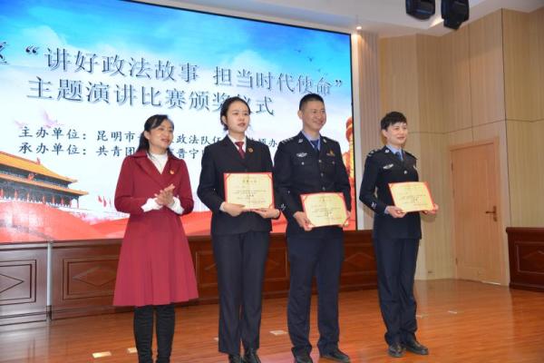 323日,晋宁区政法队伍教育整顿领导小组办公室、共青团昆明市晋宁区委联合举办“讲好政法故事 担当时代使命”主题演讲比赛。主要是为认真推进全区政法队伍教育整顿,开展好英模教育工作。区委常委、区委政法委书记马龙,区检察院检察长李云兵同志出席活动并为获奖选手颁奖。
