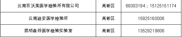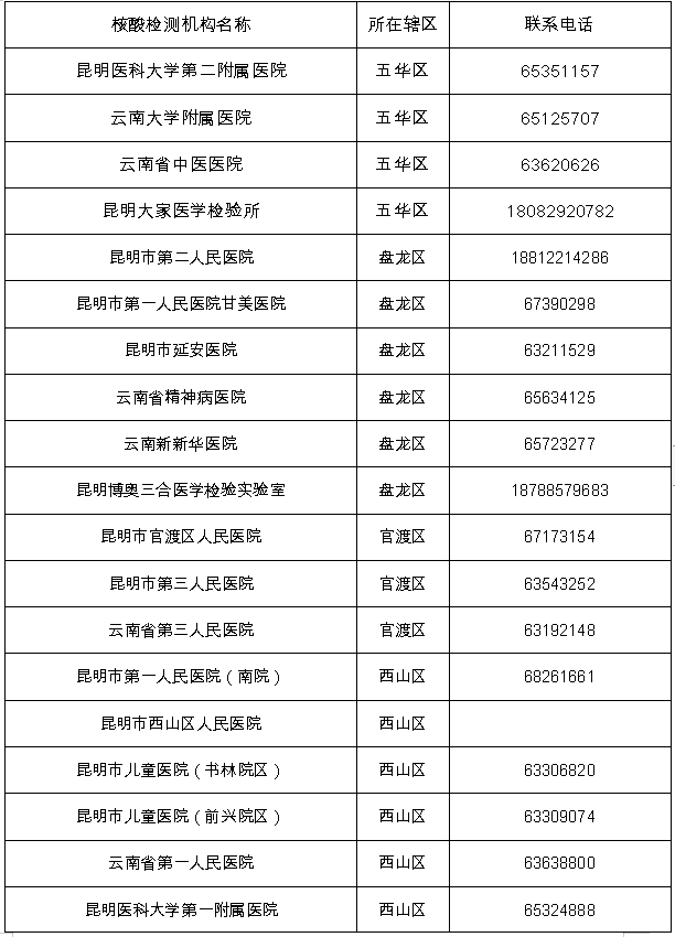 昆明市核酸检测机构名单