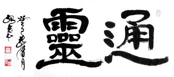 扎实的文化功底和丰富的人生阅历,是书法艺术的字外功。川北家乡,钟灵毓秀,让许绍德自幼耳濡目染;广阔天地炼红心的知青生活,使他坚毅不拔;金戈铁马的军旅生涯,铸就勇往直前的精神;研究生学历、三次做记者的经历,在国内外报刊发表作品600多件、获奖36次的实践,夯实了文字功底;25年的石油勘探生涯,让他饱览祖国大好河山;10多次的职务变换,使其阅人历事甚广;丰富深厚的艺术与人生积淀,使得许绍德先生创造了自己的书法世界。他并不是以临一家之帖见长的书法家,而是一位有完整书法体系与观念的书家。许绍德的书法以“气势”为表现形式,将字内功和字外功巧妙结合,将书法的润枯、粗细、动静与音乐舞蹈艺术相结合,形成了虚实相间、灵动磅礴的艺术风格。在他的作品中,经常看得见大山的巍峨、江海的奔腾、音乐的美妙、舞蹈的阿娜、宗教的神圣、花鸟的温馨。他的篆、隶、行、草、楷五种书体转换随心,小到扇面、大到六尺二字榜书均能做到收放自如。作品气韵贯通,意到笔随,神融墨畅,导之泉注、顿之山安,轻淡处薄如蝉翼,浑厚处重如崩云,回转处婉转蛇惊,师法造化、道法自然。