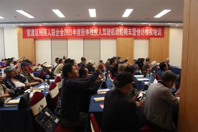 (记者 钱丙申 通讯员 陈文)4月27日,官渡区残疾人联合会结合辖区下肢残疾人及重点上访人员具体情况,组织官渡区各街道90名残疾人在云南维居金鹰大酒店开展为期一天的肢体残疾人驾驶机动轮椅车暨信访维权培训,并现场进行残疾人信访维权大接访、大下访工作,确保残疾人信访在基层有专人管有专人调解,把残疾人的矛盾化解在基层。