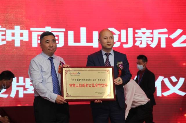随后北京钟南山创新公益基金会向中国全民大健颁发授权书以及举行签约仪式。