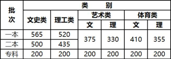 艺术文本科375分、专科200分,艺术理本科330分、专科200分。