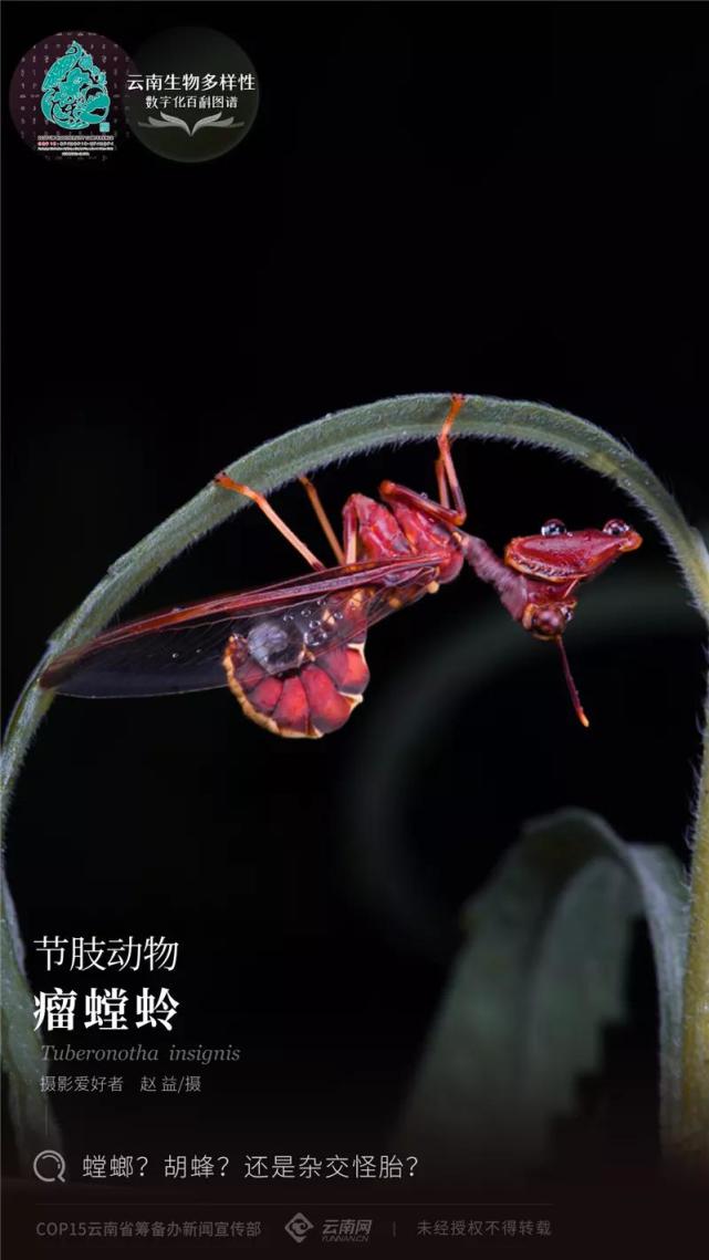 本期介绍的瘤螳蛉体色非常艳丽,这是因为在动物世界中,越是色彩鲜艳的物种有可能毒性越强。而很多物种为了避免遭受猎食者的攻击而把体色演化的和有毒动物一模一样,以达到恐吓的目的。相较于模仿胡蜂腹部的螳蛉来说,瘤螳蛉醒目的玫瑰红的体色以及柠檬黄的斑纹更加有警告的意味。