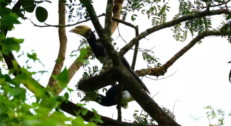 冠斑犀鸟为国家一级保护动物,也叫“山老鹳”。喜欢成双成对的“出行”,是大型鸟类界少有的“一夫一妻制”,只要其中一只“离开”,另一只将“终身不再婚”,因此有了“爱情鸟”之美称。近日,相关研究人员在小黑山保护区首次拍到了犀鸟科斑犀鸟属鸟类,确定为冠斑犀鸟,填补了龙陵县的犀鸟空白。