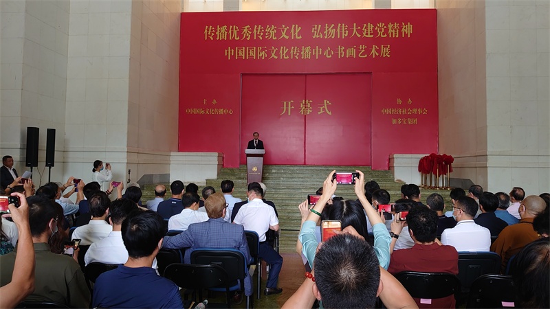 7月26日,为庆祝中国共产党成立100周年,由中国国际文化传播中心主办、中国经济社会理事会、加多宝集团协办的″传播优秀传统文化,弘扬伟大建党精神"书画艺术展在北京民族文化宫隆重开幕。