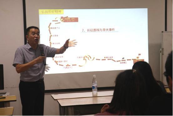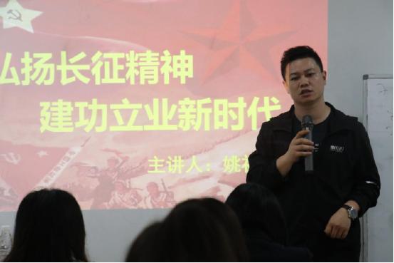 姚祖国老师对红军长征这段历史有多年研究,他从工农红军为什么要进行长征?长征途中的血战湘江、遵义会议、四渡赤水、巧渡金沙江、强渡大渡河、飞夺泸定桥、翻越夹金山、过草地、懋功会师、激战腊子口和三军大会师等波澜壮阔的重大历史事件,伟大长征背后的伟大数据,长征精神是如何形成,长征精神的内涵,长征胜利的原因经验,长征精神在新时代的应用等进行了详细讲述。声情并茂,引人入胜,演讲十分精彩,并获得阵阵掌声。