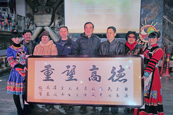 云南省收藏家协会为云南人家董事长谭忠文先生授予“德高望重”匾牌