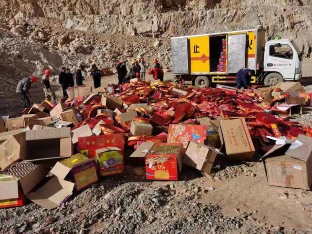 1020日下午,随着"轰轰轰"的响声,祥云县公安、应急、消防等部门联合,在刘厂镇龙山一石场将收缴的一批非法烟花爆竹进行集中销毁。