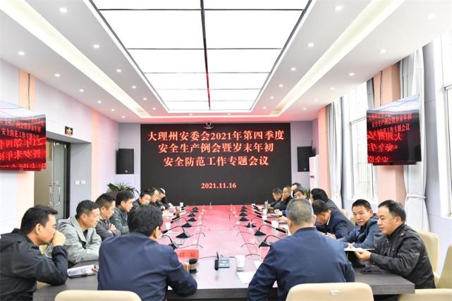 为深入学习贯彻习近平总书记关于安全生产的重要指示批示精神,全面落实省、州领导批示指示要求,坚决防范各类生产安全事故发生。11月16日上午,大理州安委会召开2021年第四季度安全生产例会暨岁末年初安全防范工作专题会议,全面总结和分析全州当前安全生产情况和面临的形势任务,研究部署岁末年初重点工作。安委会成员单位负责人参加会议。
