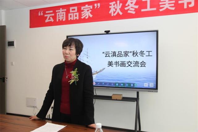 中国光大银行昆明分行北京路支行行长杨丽娟作了发言: 非常荣幸,能够受邀参加云南贵品商贸有限公司举办的“云滇品家”秋冬工美书画交流会,共同描绘大品云南炫丽色彩;同时也感谢大家能够一同见证 光大银行昆明北京路支行与云南贵品商贸有限公司 助力云品流通发展的合作开启新篇章!在此,我谨代表光大银行北京路支行,向各位领导和贵宾致以最诚挚的感谢!