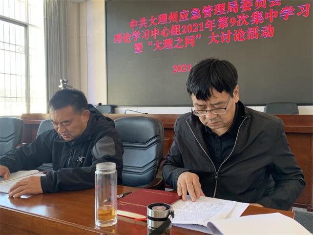 11 月24日,大理州应急管理局开展党委理论学习中心组第9次集中学习暨“大理之问”大讨论活动,并就学习贯彻十九届六中全会精神和“大理之问”大讨论活动提出意见。