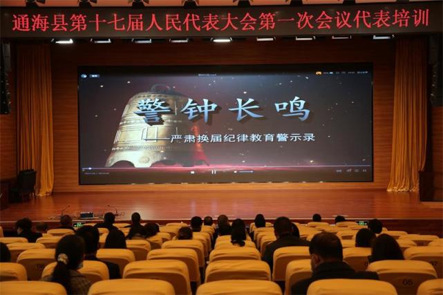 (记者 钱丙申 通讯员 左平)1月13日上午,通海县第十七届人民代表大会召开代表履职培训会。会议邀请玉溪市人大常委会选联工委副主任普香庭作代表履职专题辅导,集中观看换届选举警示教育片《警钟长鸣》,县人大常委会副主任王国雄主持会议并讲话。