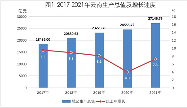 2021年,面对繁重复杂的疫情防控任务和多重困难挑战叠加的经济发展环境,云南坚持以习近平新时代中国特色社会主义思想为指导,把习近平总书记考察云南重要讲话和重要指示批示精神作为发展的总遵循、总纲领、总指引,全面贯彻落实党的十九大和十九届历次全会精神,科学统筹疫情防控和经济社会发展,认真落实省委、省政府工作部署,沉着应对各种风险和挑战,奋力拼搏、顶压前进,“三个定位”建设取得新进展,“六稳”“六保”工作有力有效,经济发展延续稳中加固的态势,经济运行保持在合理区间,高质量跨越式发展步伐坚实坚定,实现了“十四五”良好开局。