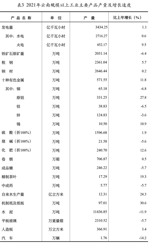 表2 2021年云南主要农产品产量及增长速度[8]