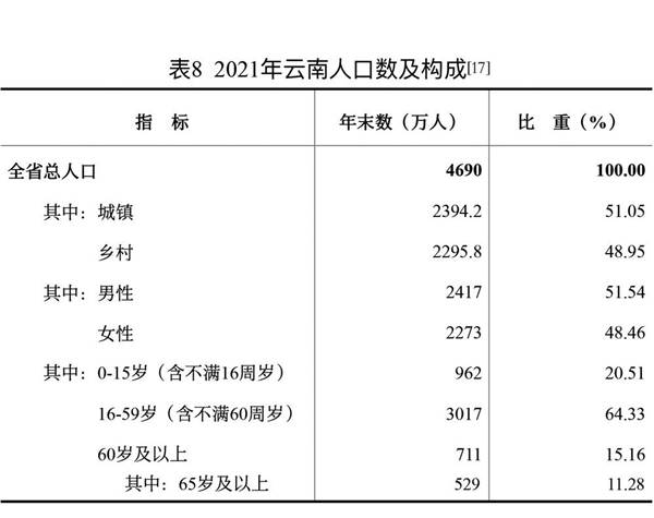 年末全省常住人口4690万人。全年出生人口44万人,出生率为9.35‰;死亡人口38万人,死亡率为8.12‰;自然增长率为1.23‰。年末全省城镇人口2394.2万人,乡村人口2295.8万人,全省城镇化率51.05%。