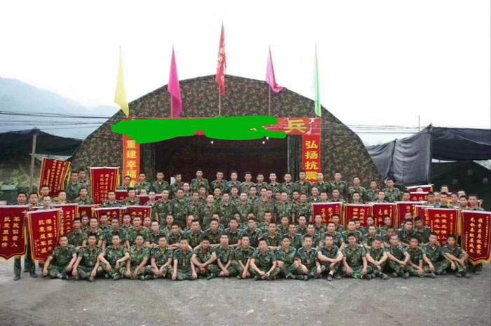 (图为王波与战友们在四川汶川抗震救灾后的集体合影)