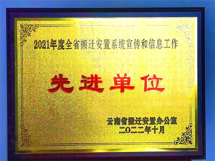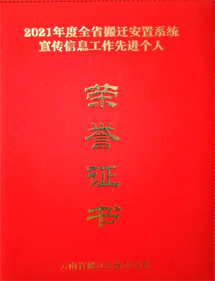 近日,云南省搬迁安置办公室表彰2021年度全省搬迁安置系统宣传信息工作先进单位和先进个人,其中文山市搬迁安置办公室和李胜娇已连续两年荣获全省搬迁安置系统宣传信息工作先进单位和先进个人。