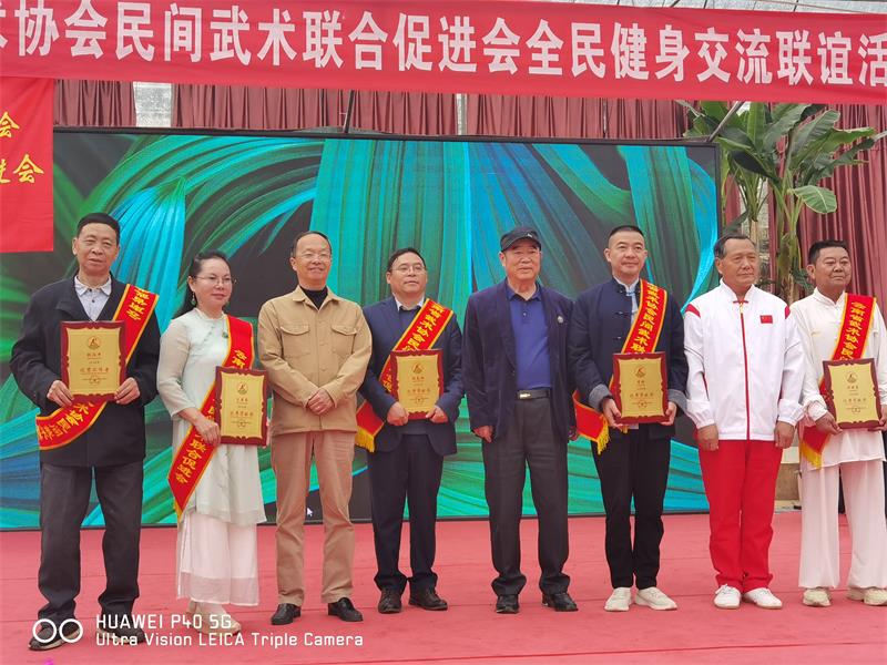 2023年5月13曰,云南省武协民间武术联合促进会在团结乡佳沄生态园组织全民健身交流联谊会,并对2022年度对协会支持关心的企家们颁奖。会议由顾姣姣秘书长主持,李忠良会长代表云南民间武术联合促进会感谢企业家们的支持,并由李忠良会长、赵力中、张槐斌名誉会长共同为副会长:段志恒、李云德、王建英、宋刚、王海州、刘云涛、许明富、吴坚、陈静颁发“优秀贡献奖”,并对几位副秘书长进行表彰,他们分别是王兼、钱丙申、刘白洋,颁奖仪式在愉快的音乐声中进行,希望大家再接再厉,为促进会添砖加瓦!