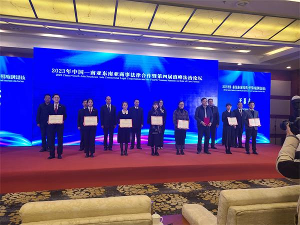 为了加快推进我国涉外法治体系和能力建设,12月6日,2023年中国—南亚东南亚商事法律合作暨第四届滇峰法治论坛在昆明举行。本次论坛以“深化国际商法合作,建设一流营商环境”为主题,由中国贸促会法律部、云南省贸促会、云南省法学会共同主办。论坛期间,对第四届滇峰法治论坛主题征文活动获奖论文进行了表彰,发布了《柬埔寨贸易投资法律风险防范指南》,开展主旨演讲、专题研讨。