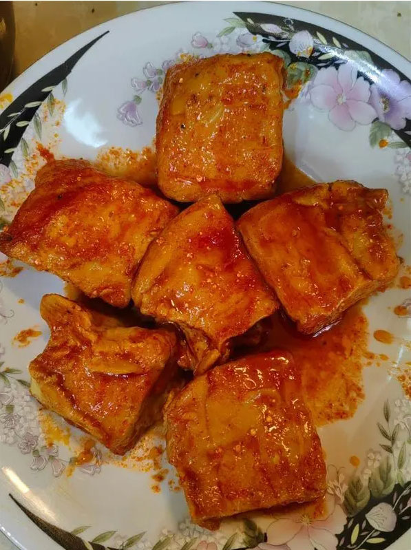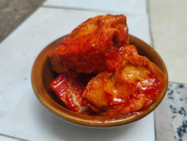 绵软滑嫩,豆香浓郁,油润,微辣,咸香,甜香……入口即化,油卤腐是最为大众所熟知的云南卤腐。将晾晒好的臭豆腐用白酒浸裹,香料增味,沾满辣椒,最后再用炼熟的上好菜油做点睛之笔,使卤腐充分吸收油香。封存数月,即可收获美味。与绍兴醉方腐乳,四川夹江腐乳,桂林腐乳并称“中国四大腐乳”的云南牟定卤腐是流传较广的云南油卤腐。除此以外,石林路南油卤腐,玉溪油卤腐,七甸油卤腐都是知名的云南油卤腐,而产地位于昆明晋宁的石将军卤腐,其制作豆制品的历史最早可以追溯到民国初年,手艺传承百年,卤腐油汁清澈,筷子一碰便酥软成泥,发酵的恰到好处,别有一番风味。