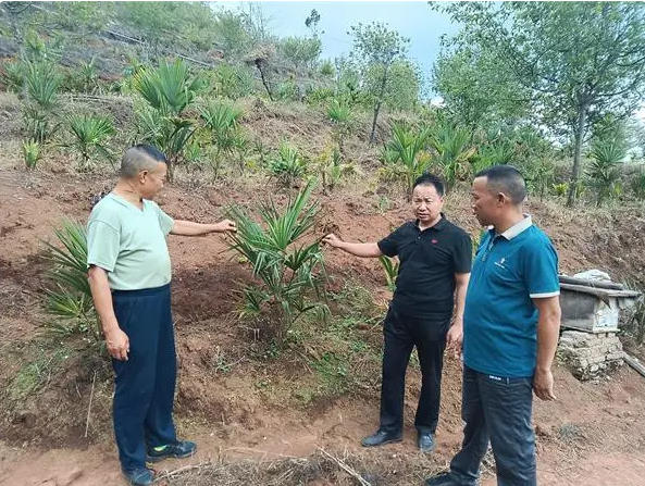 “进入秋季,甜棕树生长速度减缓,建议施用复合肥、有机肥、钾肥及微量元素肥料,并采用根部施肥为主、根外施肥为辅的方法。秋季施肥频率应适当减少,避免过量施肥。”老兵吴仕平对隆阳区水寨乡水沟村甜棕种植农民李树昆说。