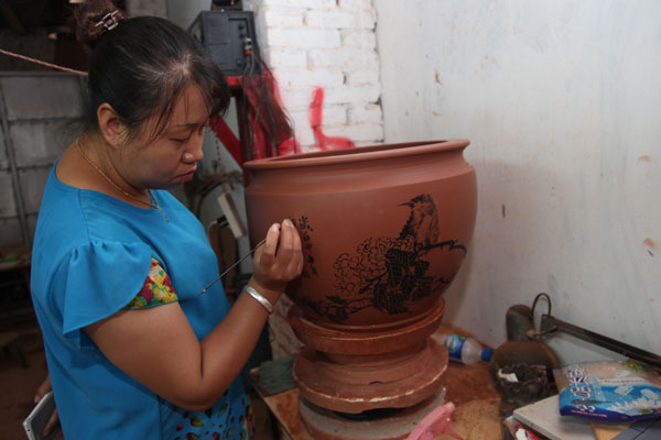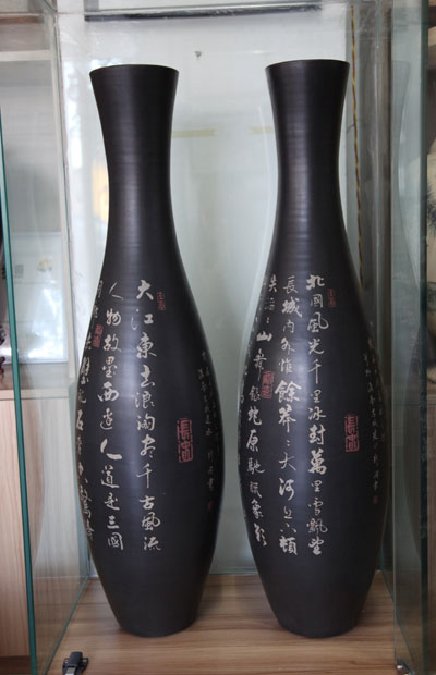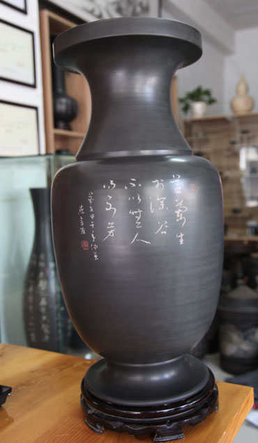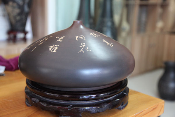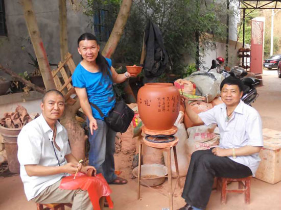 记者利用端午节与中国书法家协会会员书法家燕金发、云南斑铜雕塑艺术大家汪金鹏等驱车来到历史文化名城建水,直接走进了“笛龙陶艺”工作室以及“笛龙陶艺”展览销售部,让我们看到的是各式各样的获奖证书及获奖建水紫陶品。在生产工作室观看了整个工艺复杂流程,并亲自书画紫陶制品,范成雄及周冬英经理介绍:建水紫陶历史悠久,深厚的文化内涵以及独特的制作工艺,与江苏的宜兴陶、广西的钦州陶、四川的荣昌陶并称为中国四大名陶,建水紫陶具有亮如镜、质如铁、音如磐、洁如玉的特点。随着社会经济的发展,人们生活水平的提高,人们追求生活品质的提高,营造收藏文化,提高收藏意识,艺术品市场走向活跃,云南艺术品市场逐渐的成熟,越来越多的人了解建水紫陶,并喜欢建水紫陶。建水紫陶的消费群逐渐地由省内转向省外,甚至是国外。